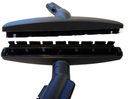 This straight suction floor tool has dual 11″ wide rows of soft horsehair bristles and rubber wheels to protect surfaces.
